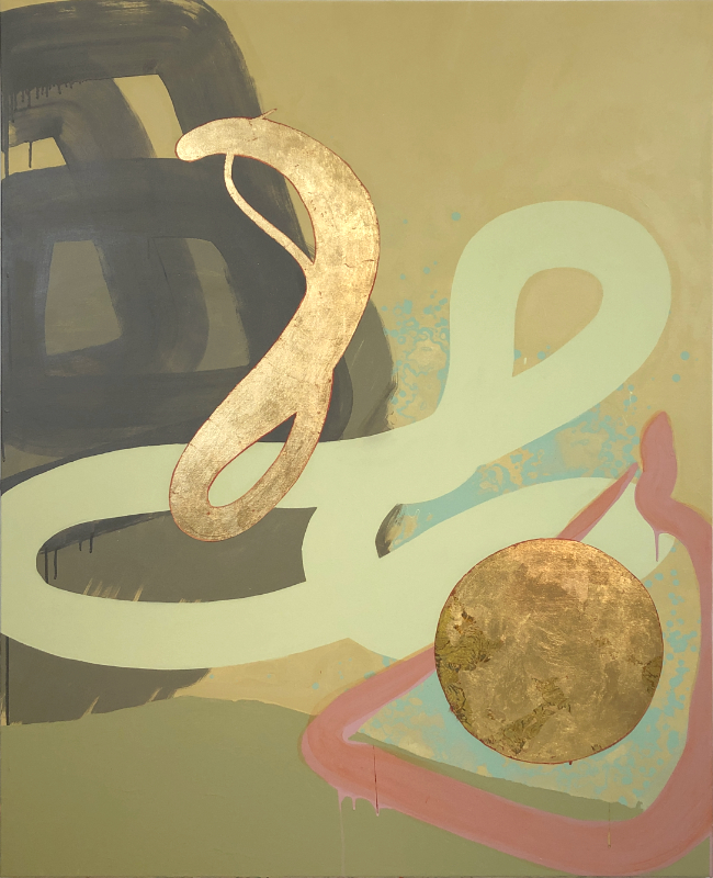 Creation, 2019, 60″x48″, acrylic and gold leaf on canvas.