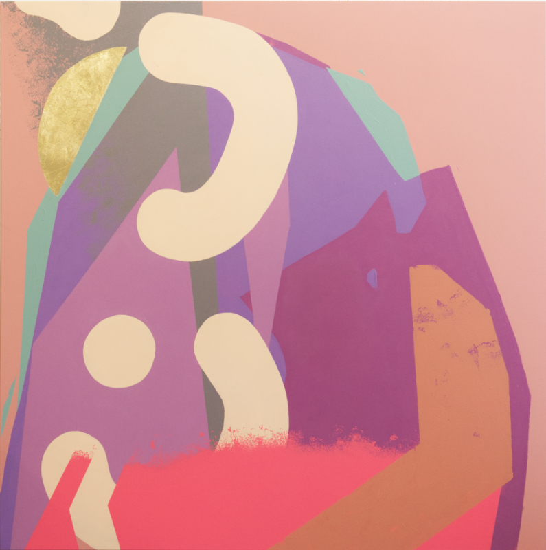 Generate, 2020, 60″x60″, acrylic and gold leaf on canvas.