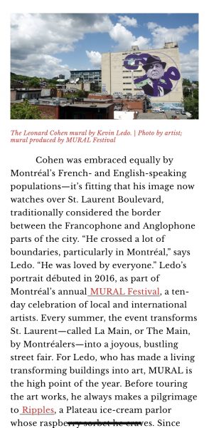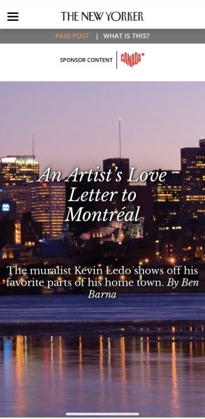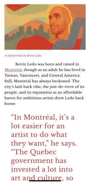 An illustration and article about Ledo’s favourite spots in Montreal featured in The New Yorker, commissioned by Tourism Canada.