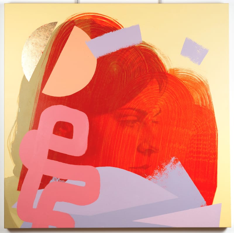 Waking Dream, (woman looking right). 2020, 48″x48,” acrylic and gold leaf on canvas.Waking Dream, (man looking left). 2020, 48″x48,” acrylic on canvas.Waking Dream, (woman looking left). 2020, 60″x60,” acrylic on canvas.Beneath the Layers, 2020. 60″x60,” oil and acrylic on canvasWhere in the Shadow . 2020, 72″x60,” acrylic on canvas